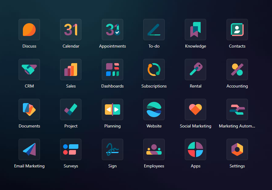 Whether you are self-employed or have 30 employees, there is a solution available for every business. Odoo offers: